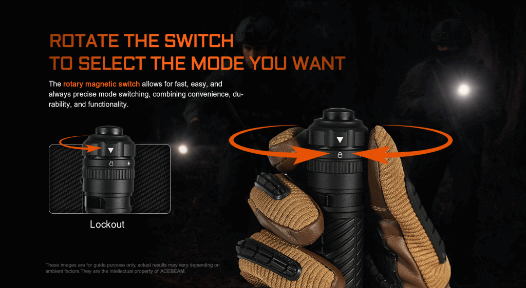 Den roterande magnetiska lägesväljaren ger direkt och exakt åtkomst till fem dedikerade lägen, inklusive omedelbar Turbo och Strobe, medan den tvåstegs bakbrytaren möjliggör både momentan och konstant aktivering. Kombinationen ger full kontroll även under stressade förhållanden.