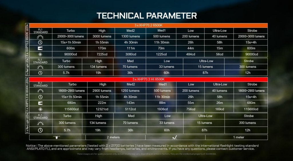 Acebeam X30 CREE XHP70.2 6500K 20000 lumen 600m + röd